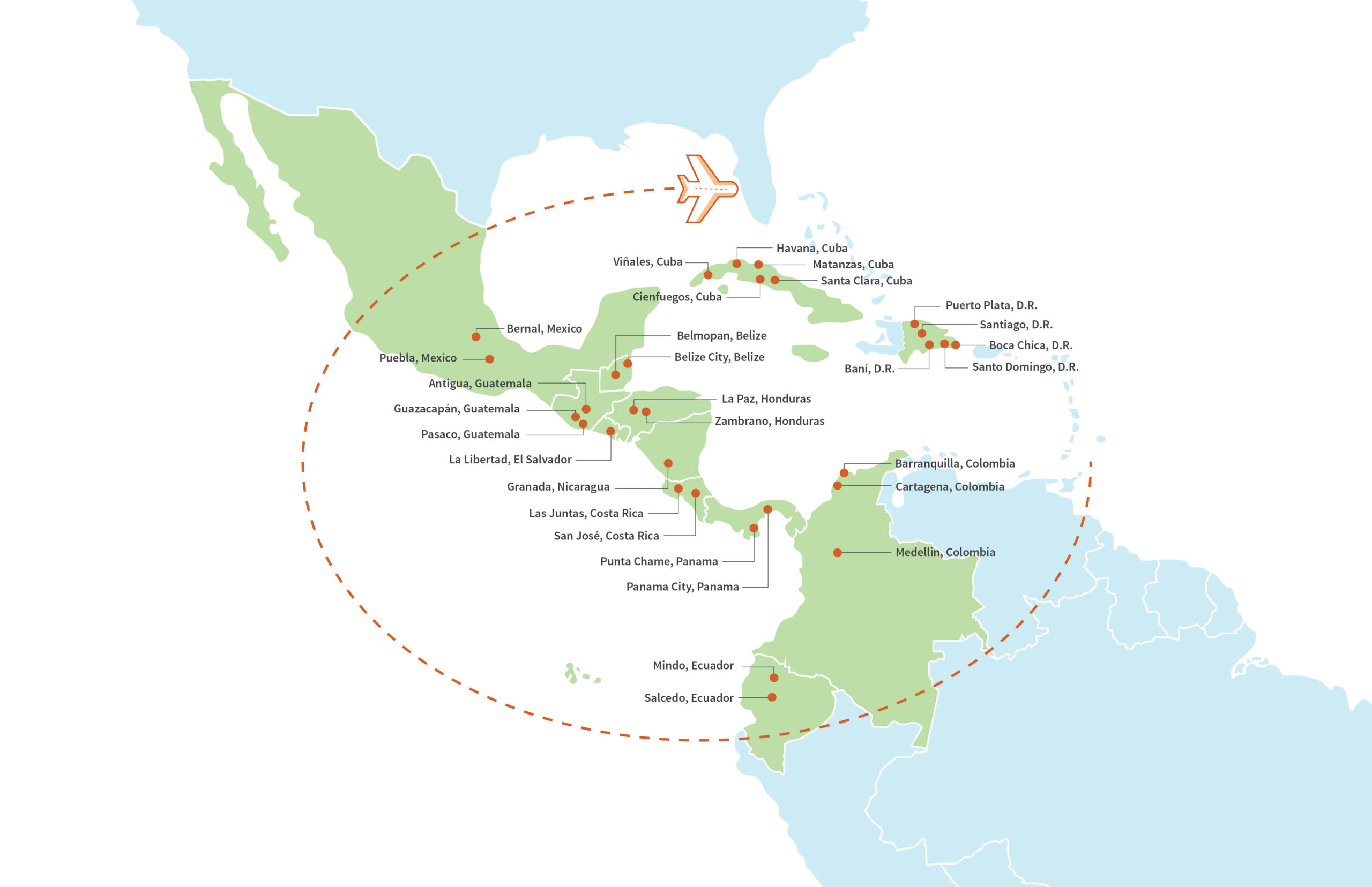 We currently have ministry bases in 12 countries – Belize, Colombia, Costa Rica, Cuba, Dominican Republic, Ecuador, El Salvador, Guatemala, Honduras, Mexico, Nicaragua and Panama.
